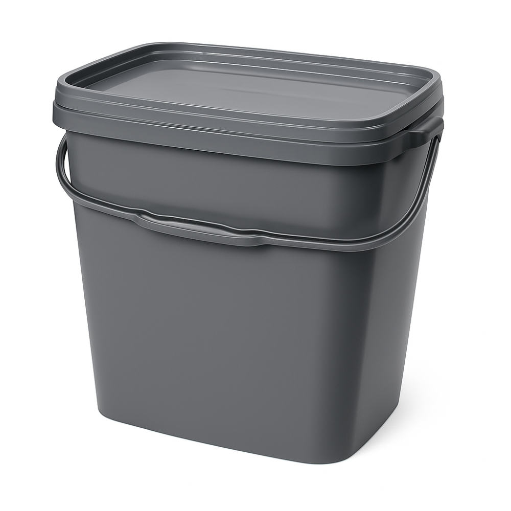 10L Grey Rectangular Storage Bucket – Food Grade with Snap Lid