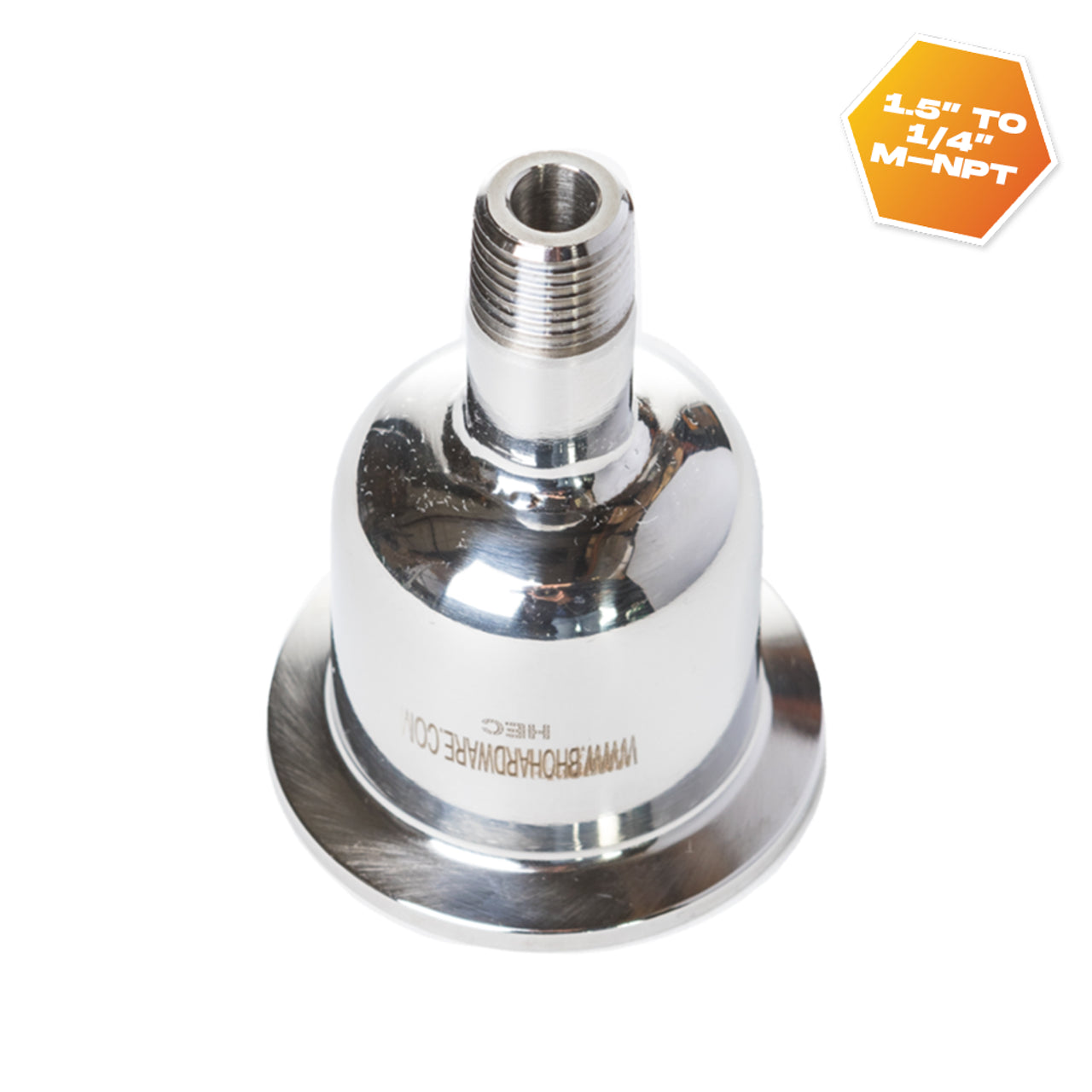 Available in multiple size combinations including 1.5", 3", and 6" Tri Clamp sizes with 1/4" or 3/8" M-NPT male ports, these components are widely used in sanitary, processing, and pressure control setups. Install using a standard tri clamp and gasket (sold separately) for leak-proof performance.