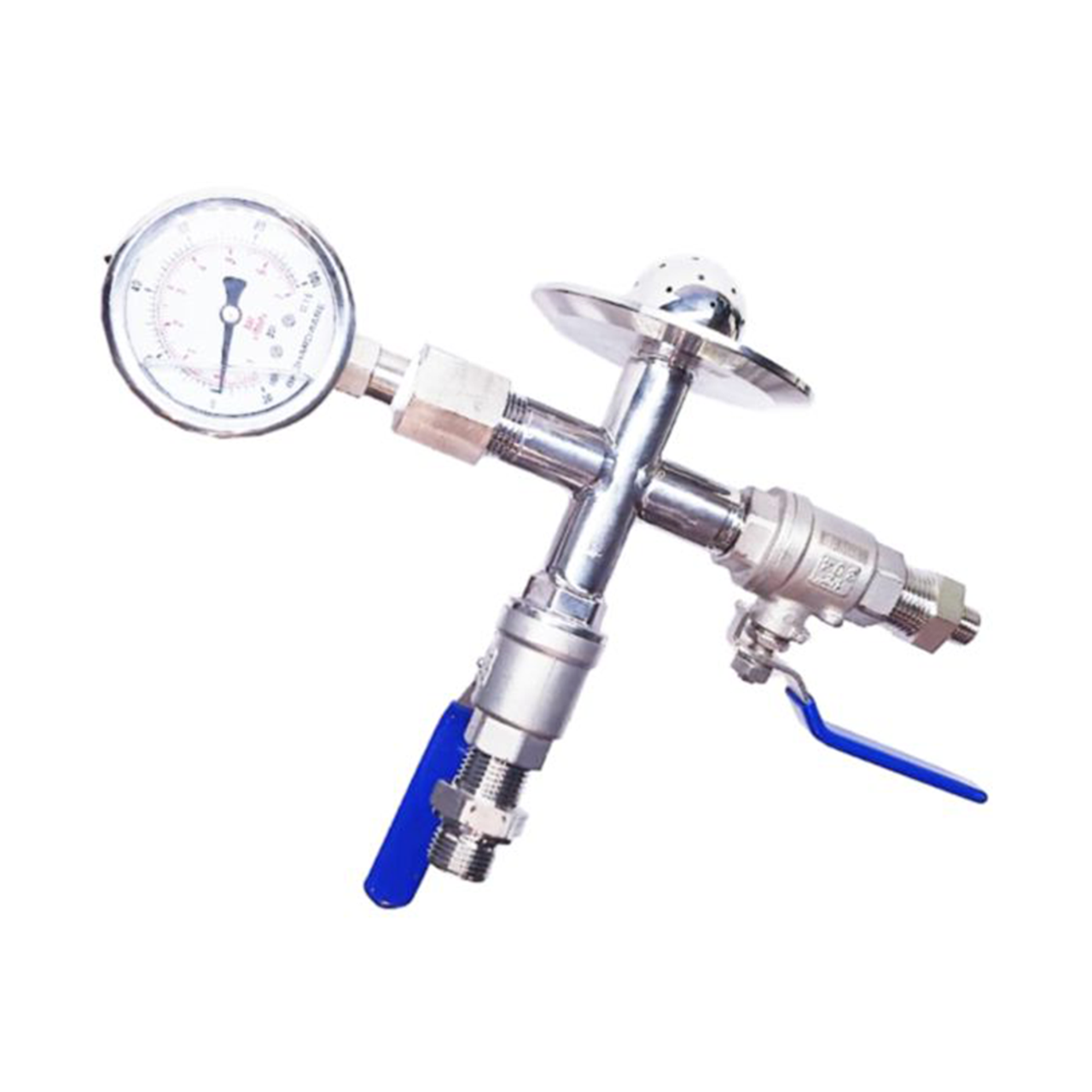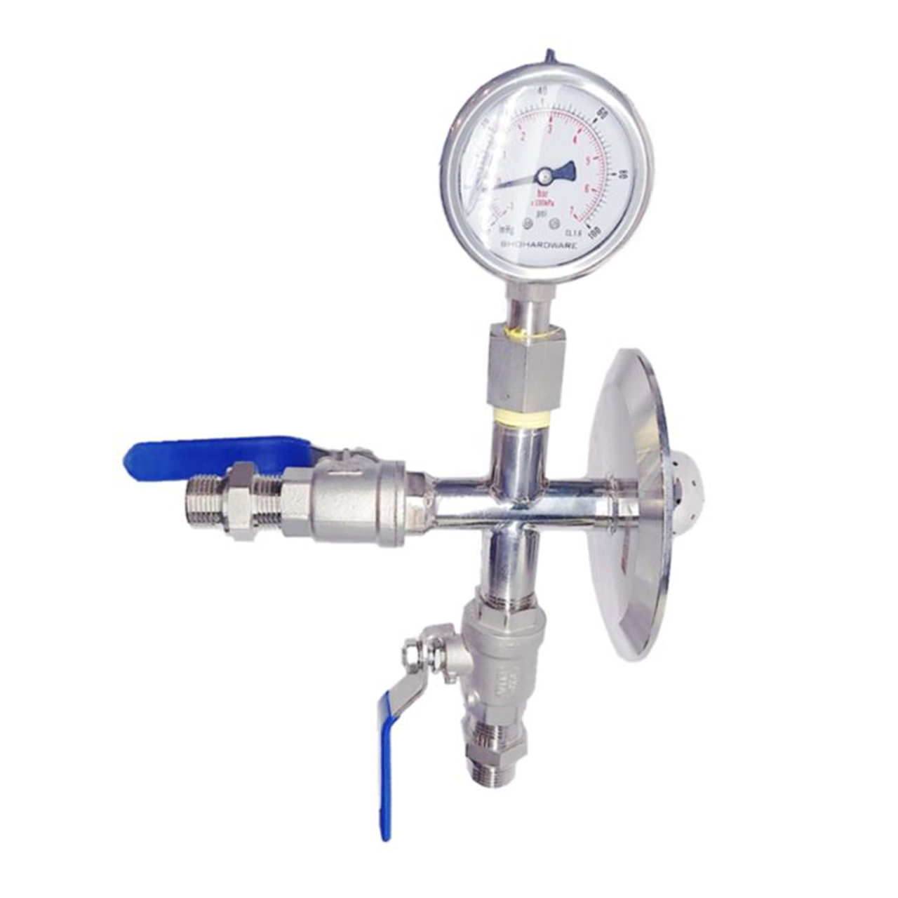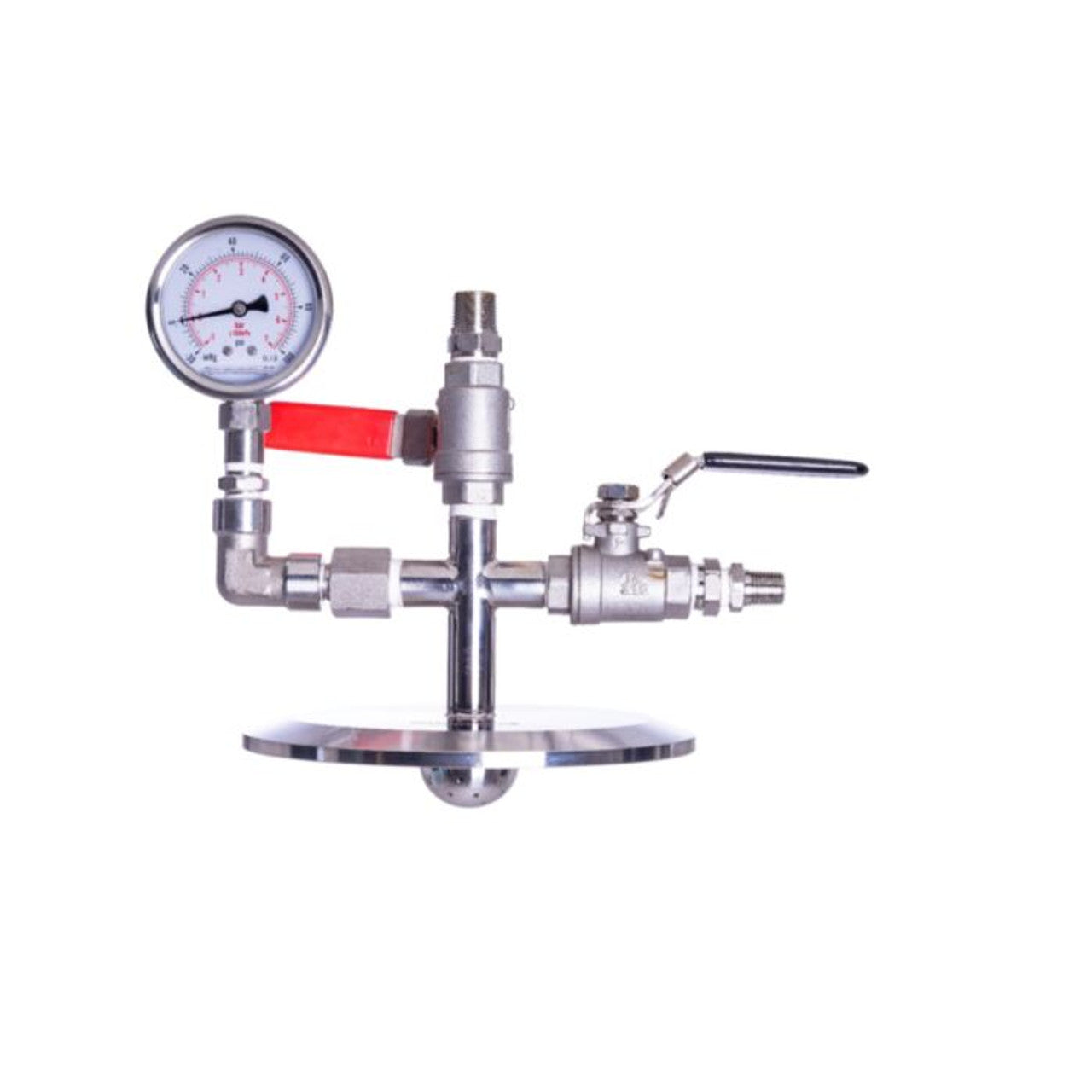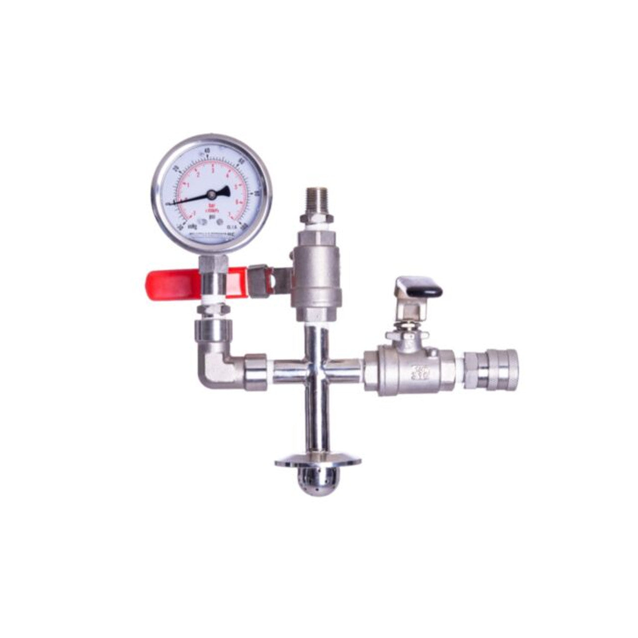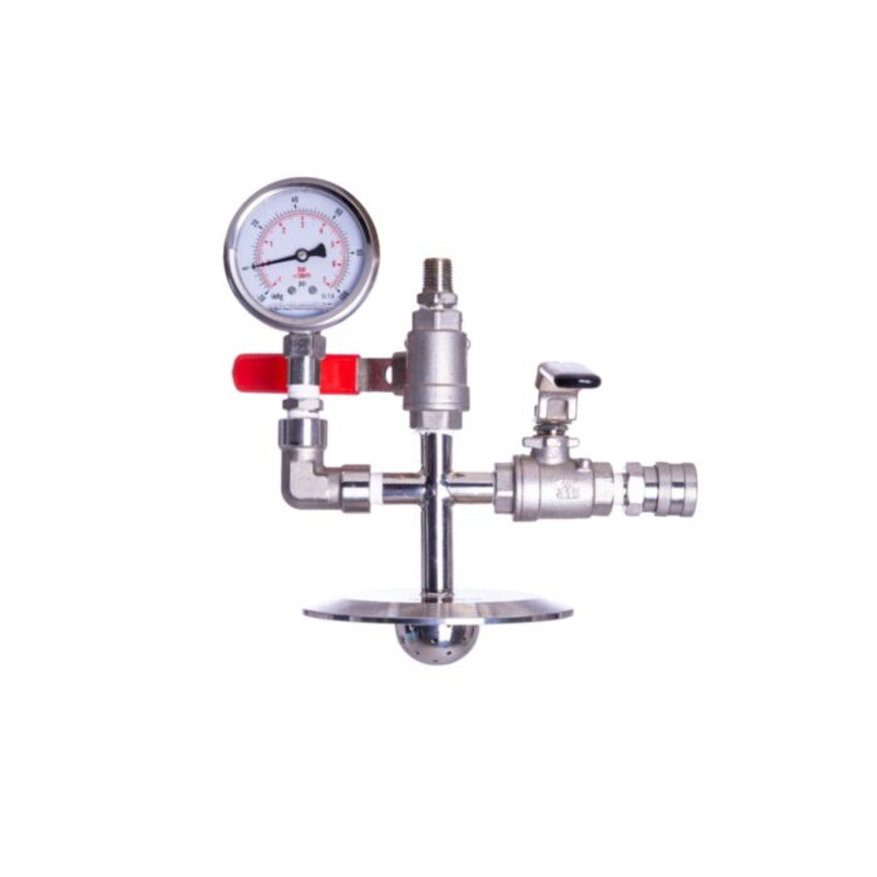 Compatible with 1.5", 3", 4", and 6" tri-clamp systems, this component is designed to improve fluid wetting across the ferrule spool, speed up cycling between runs, and support optional inline pressure monitoring. It can be fitted with socket couplers, pressure gauges, or quick-injection fittings depending on your processing setup.