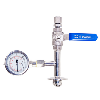 The Fluid Inlet Tee 1.5" or 3" with Pressure Gauge Upgrade is a precision-engineered component made from high-quality 304 stainless steel. Designed to enhance safety and performance in fluid-handling systems, it features a welded dispersion shower head for even flow and a pre-drilled hex nut connector