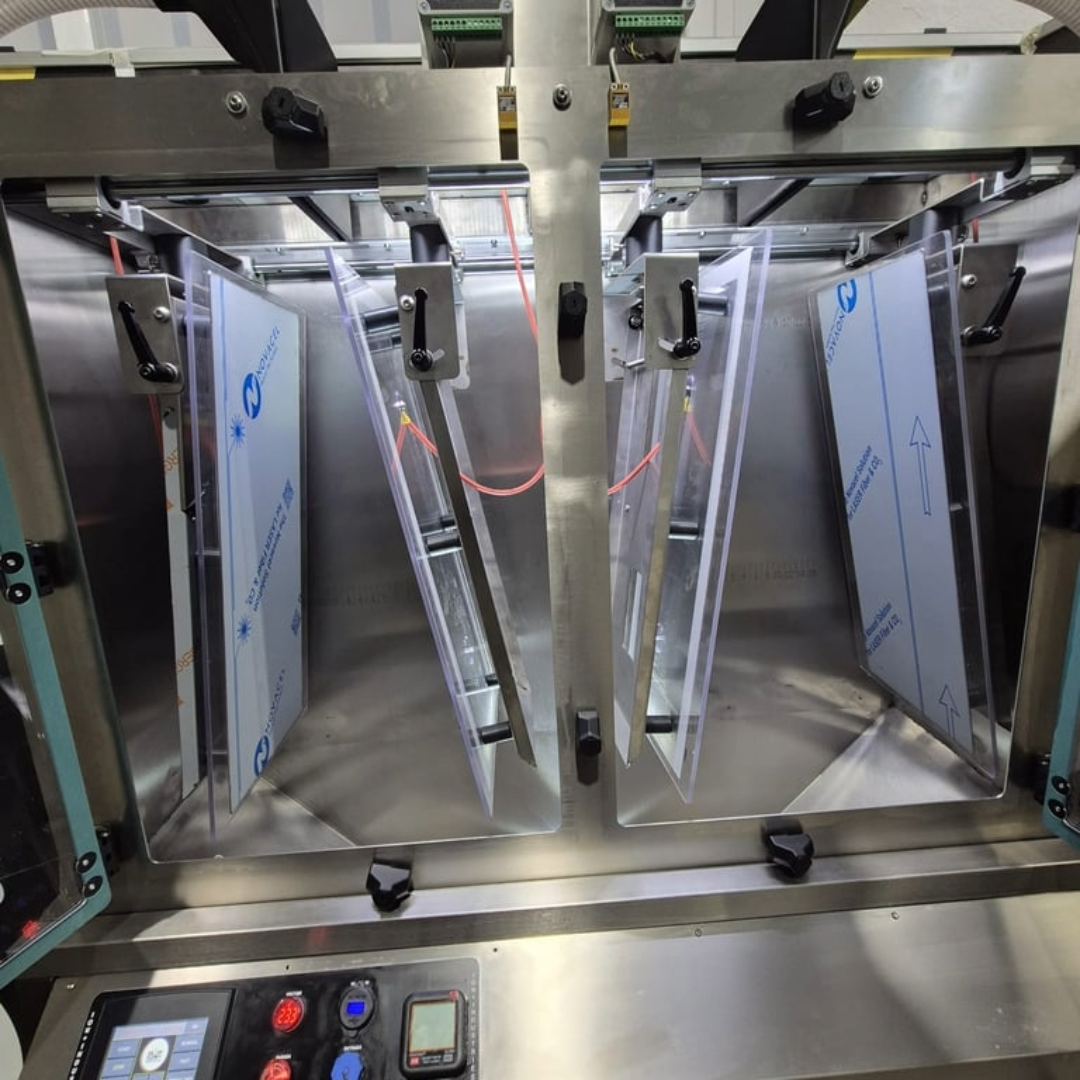 Constructed with a stainless steel structural frame and anodised aluminium electrostatic components, the Titan V2 integrates advanced electrostatic separation, vibration-assisted dosing, and full system automation within a robust, modular platform. Enhanced airflow management, sealed electrostatic generation, and real-time monitoring enable reliable performance under controlled environmental conditions.