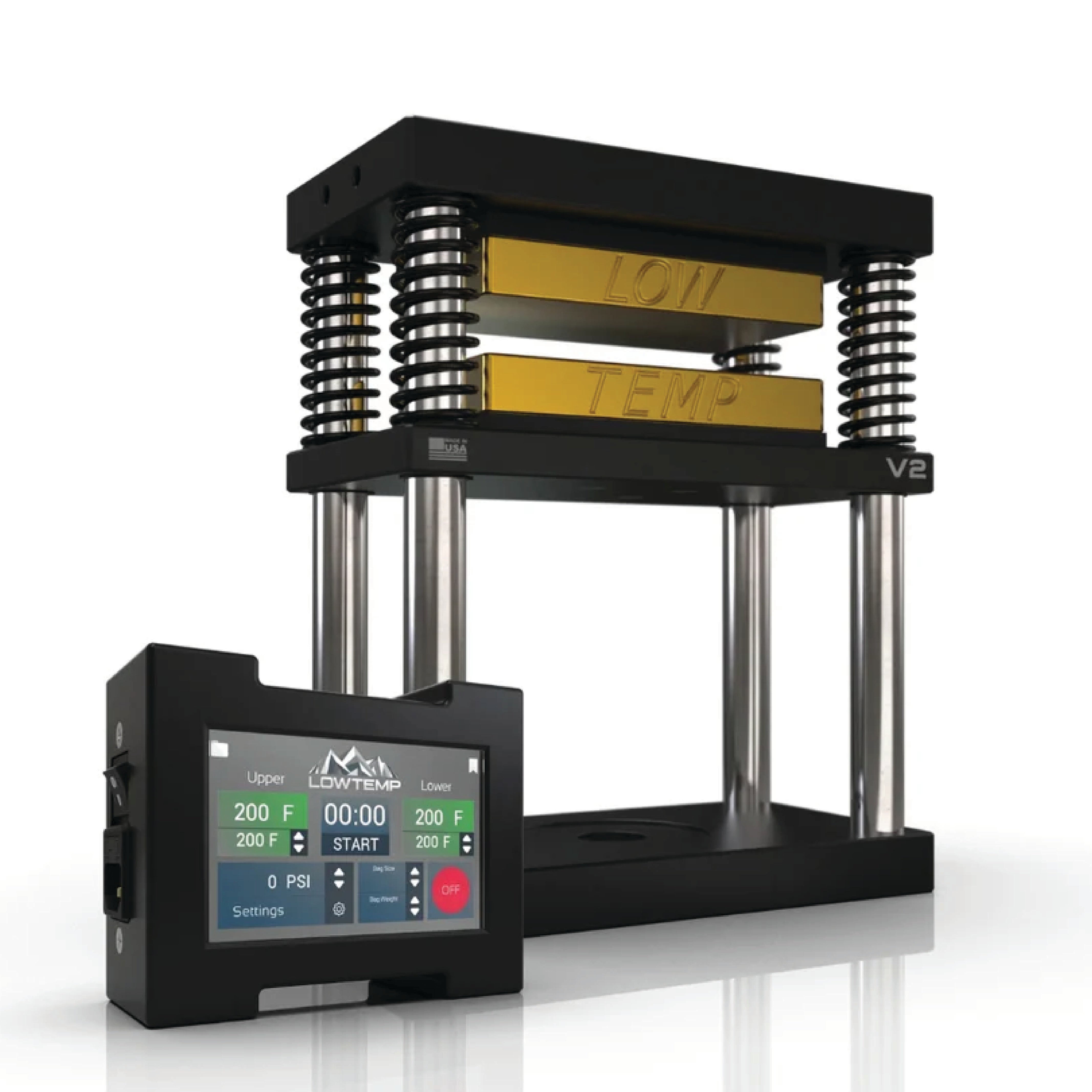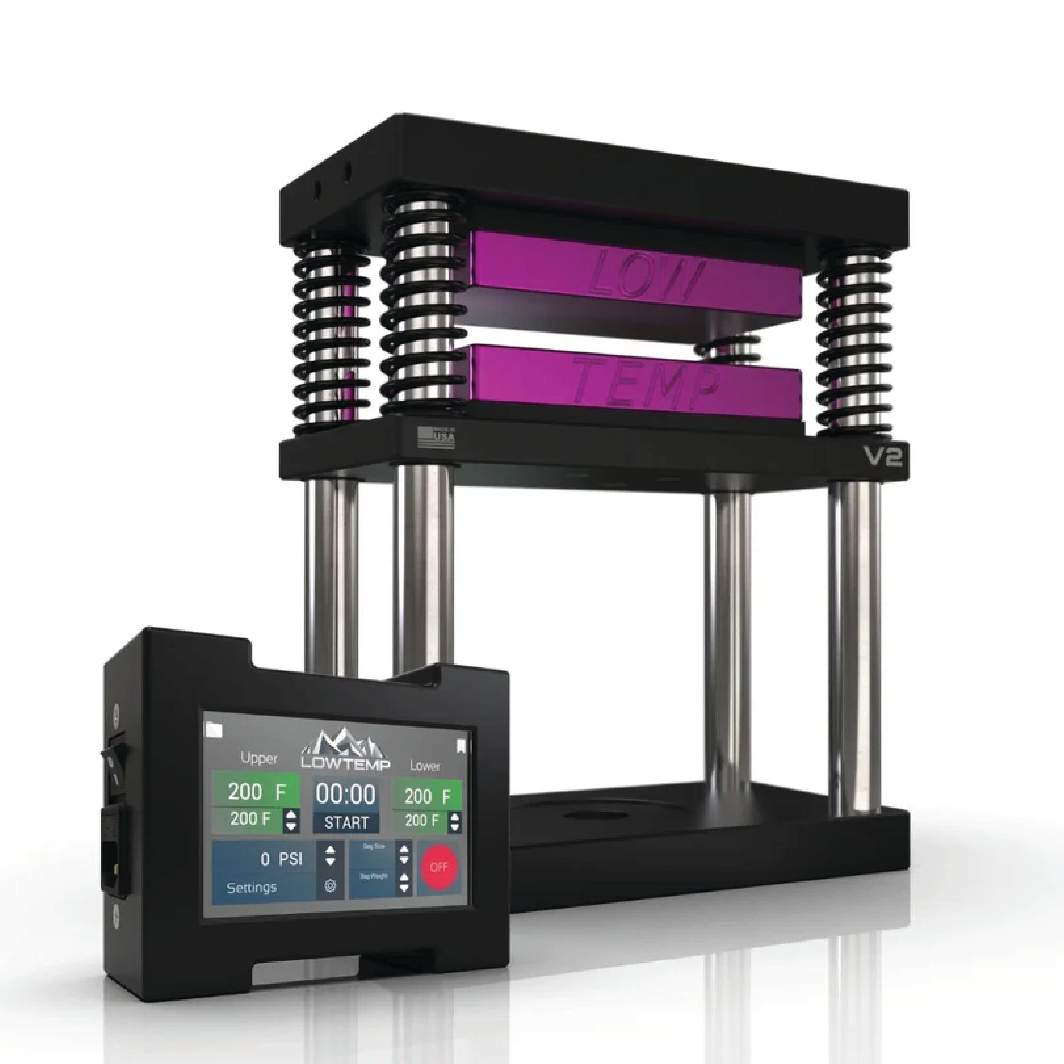 The LowTemp Industries Tall V2 4x7 Press is a versatile, high-performance heat press engineered for reliable use in both home and laboratory environments. This standalone frame kit offers a balanced mid-point between DIY cage systems and fully hydraulic units—delivering exceptional control and durability without requiring an external hydraulic setup.