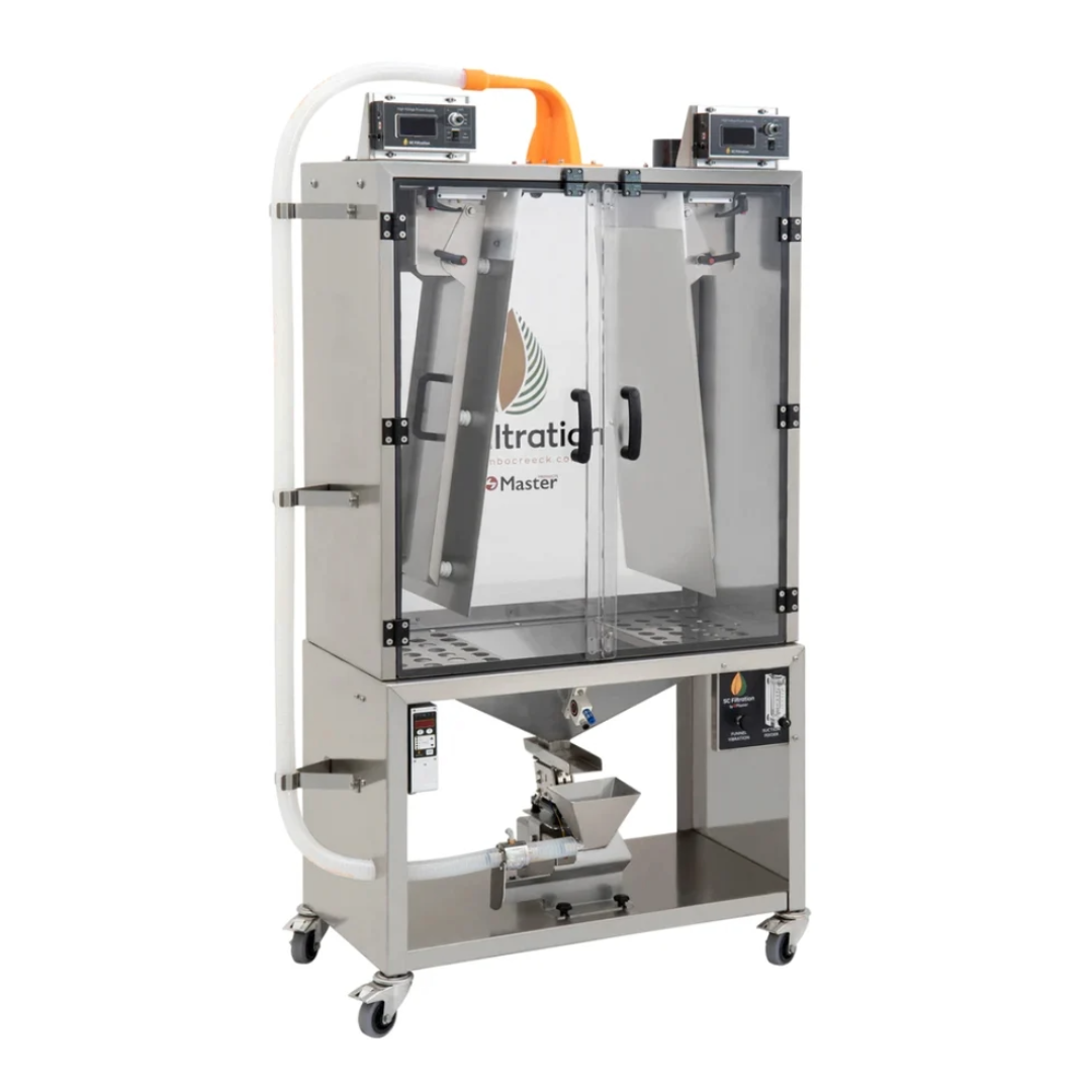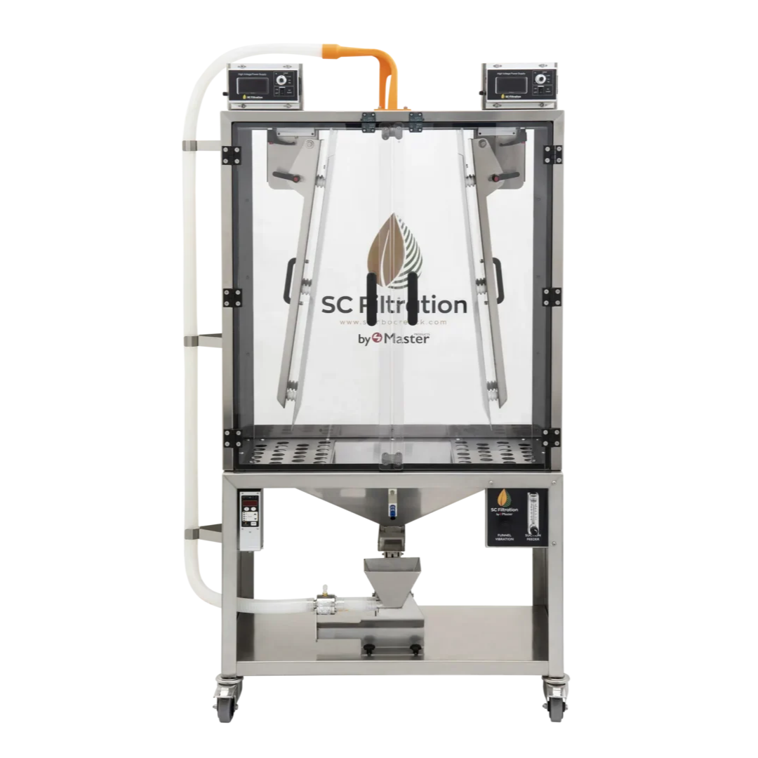 This electrostatic particulate separation system is a professional-grade tribostatic processor designed to isolate fine particulate components from carefully prepared botanical material using controlled static charge rather than heat or chemical agents.