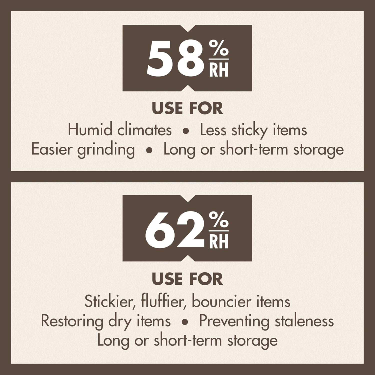 Multiple RH options – Available in 58% and 62% humidity levels