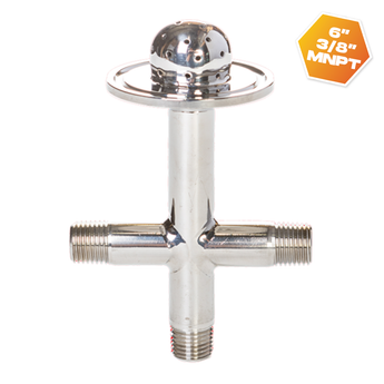 The integrated stainless steel shower head promotes even saturation across internal contents, helping to minimise channelling and improve overall process efficiency. Featuring an MNPT threaded port, this inlet cross integrates securely with standard plumbing connections and is fully compatible with Tri-Clamp assemblies.